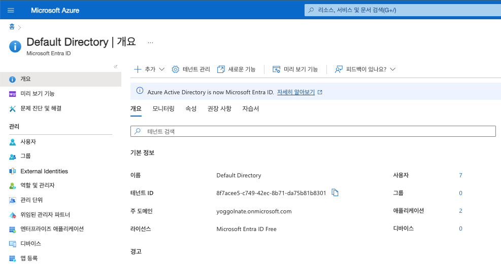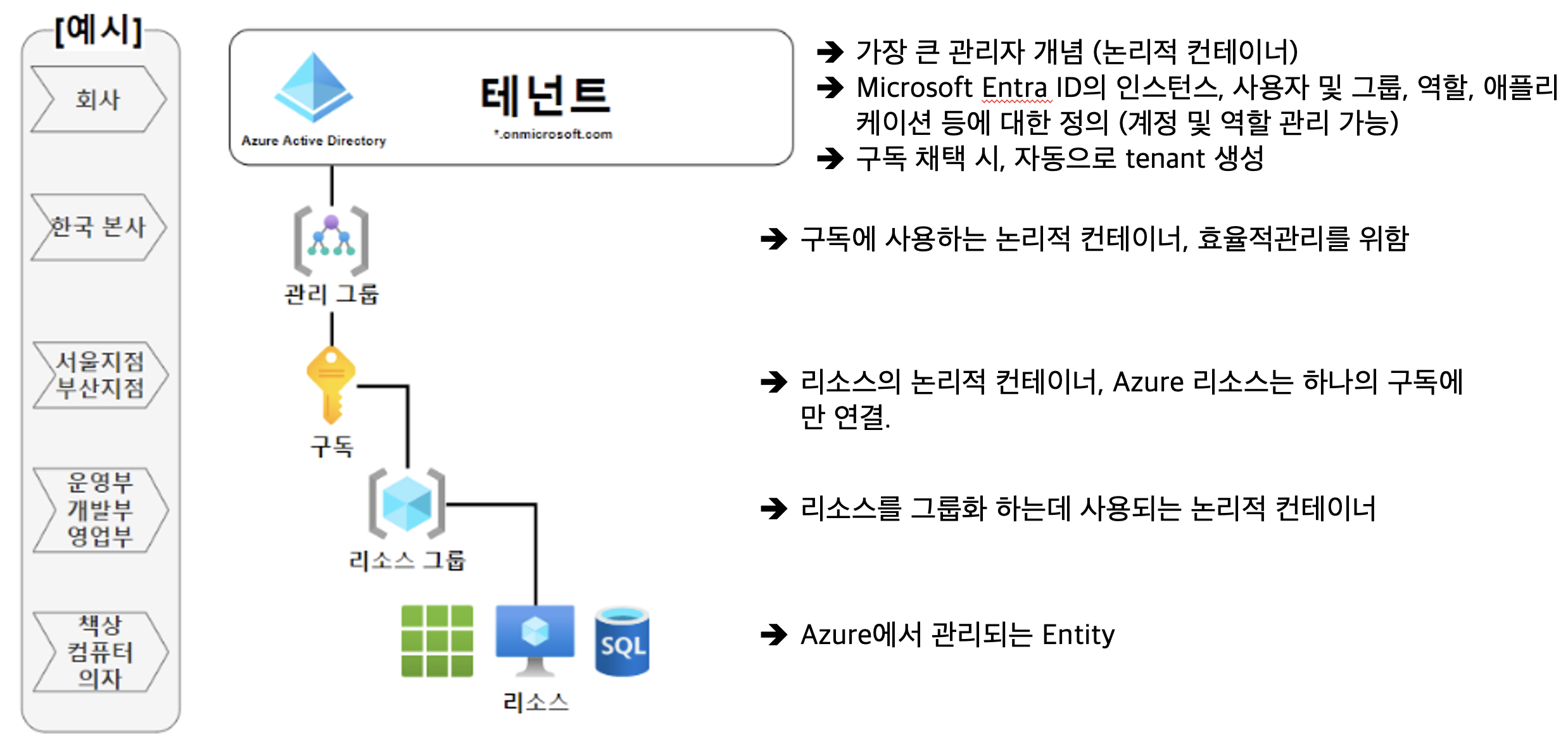 Azure에서 제공하는 서비스 중에서 계정 및 권한 관리를 위해서는 Microsoft Entra ID를 사용해야한다.
