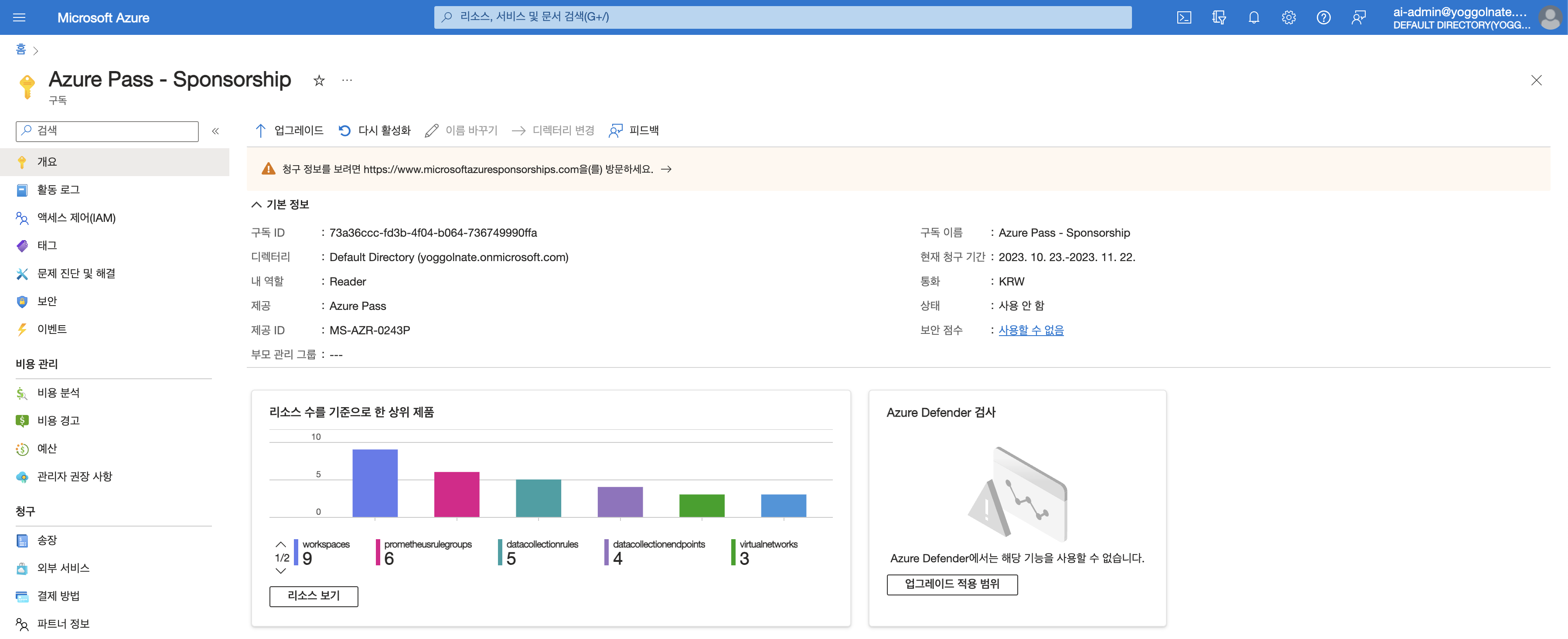 ai-admin으로 로그인하면 구독이 연결된 것을 볼 수 있다.