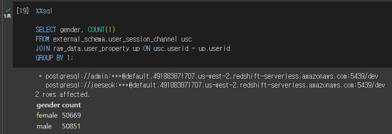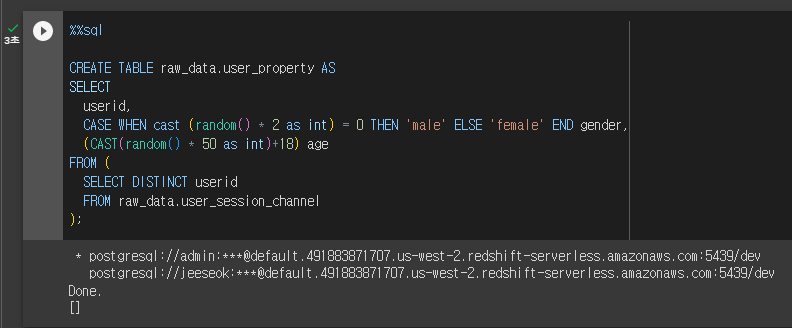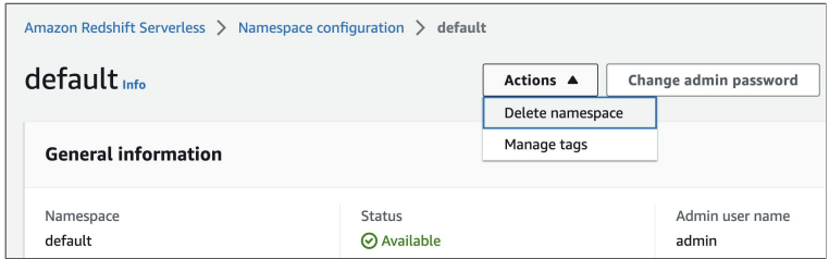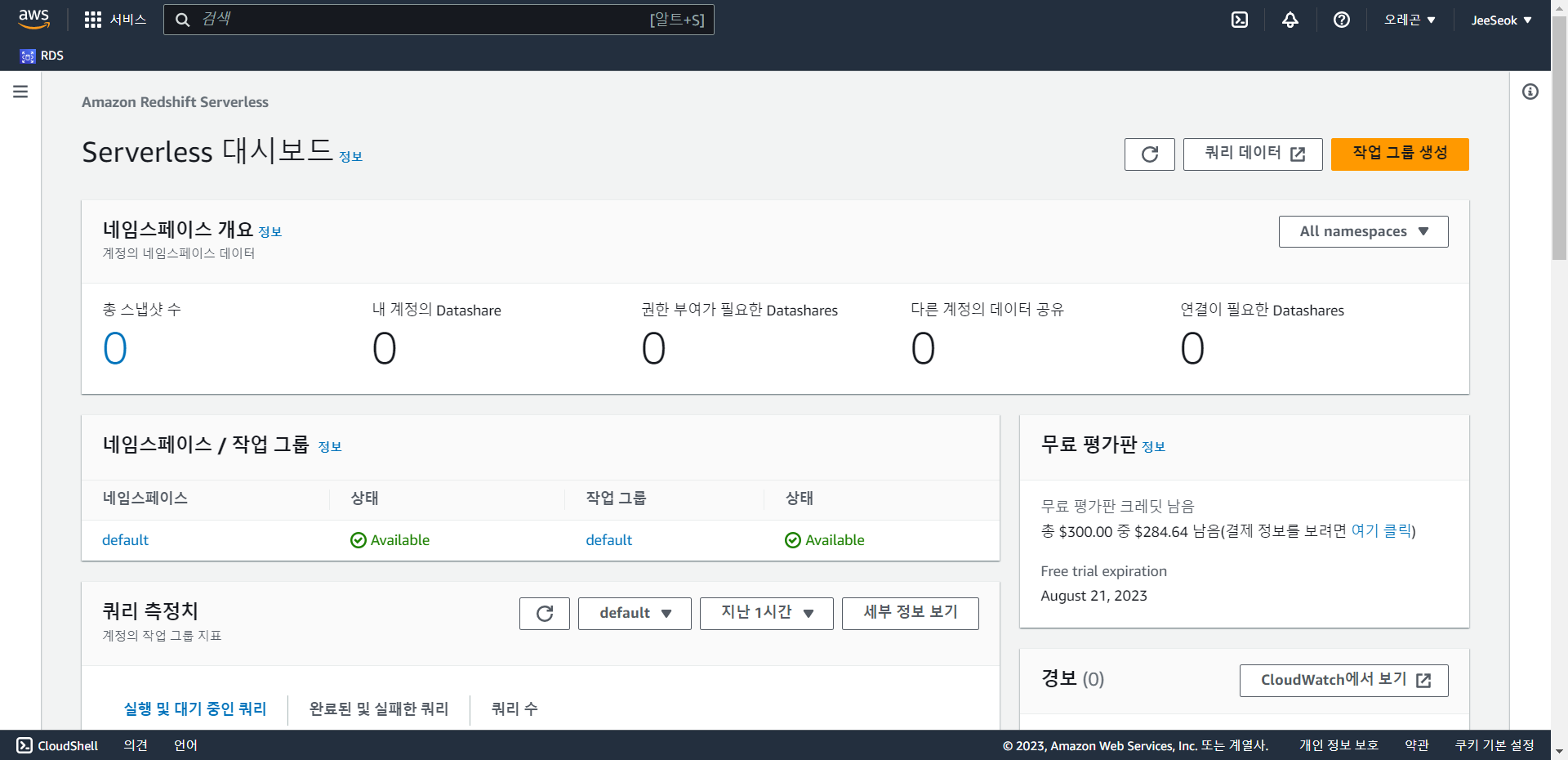 - 해당 Redshift Serverless에 들어와 default 네임스페이스에 들어간다.