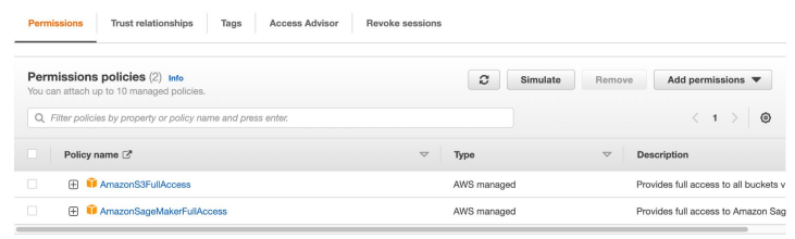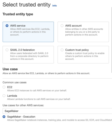 a. AWS Service 타입의 권한을 만들고 SageMaker 권한과 S3 권한을 지정