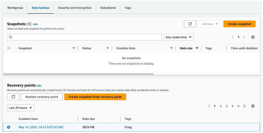 Redshift Serverless가 지원하는 데이터 백업 방식