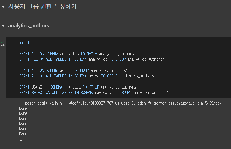 GRANT ALL ON SCHEMA analytics TO GROUP analytics_authors;