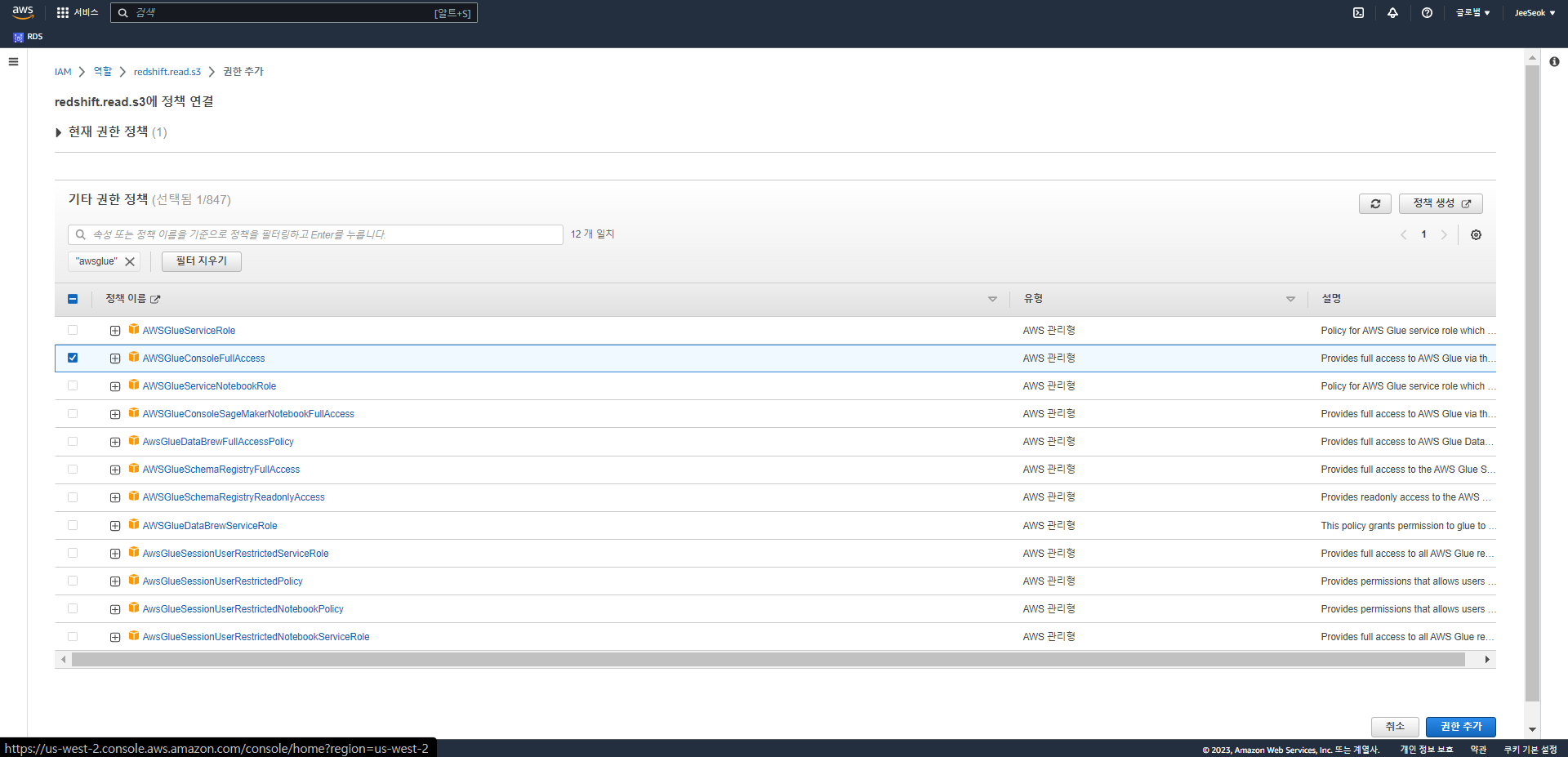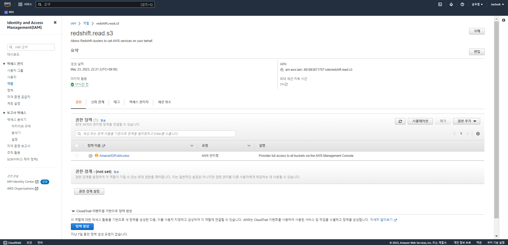 - 마지막으로 이를 Redshift의 권한으로 지정 (Associate IAM Roles)