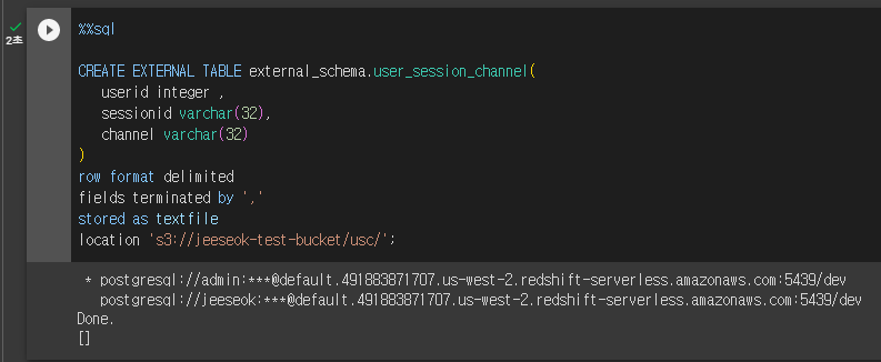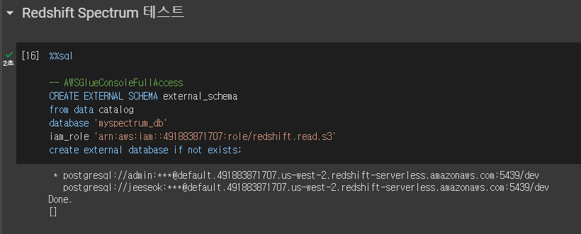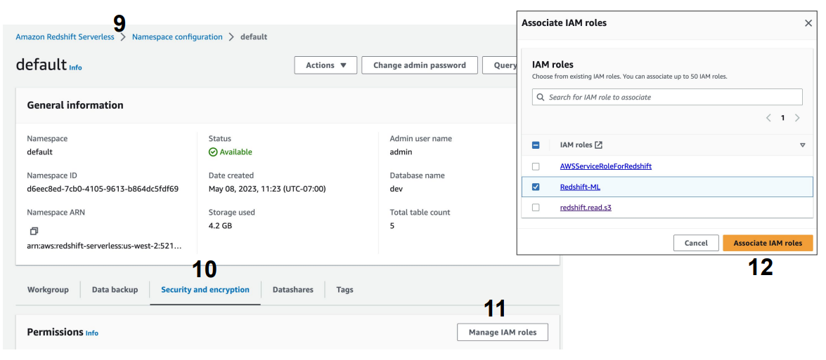 SageMaker 사용권한을 Redshift cluster에 지정해주어야함