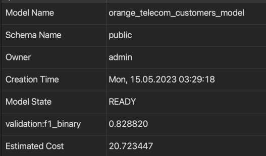 FUNCTION ml_fn_orange_telecom_customers -- 모델 생성 시 SQL 함수로 이름 설정