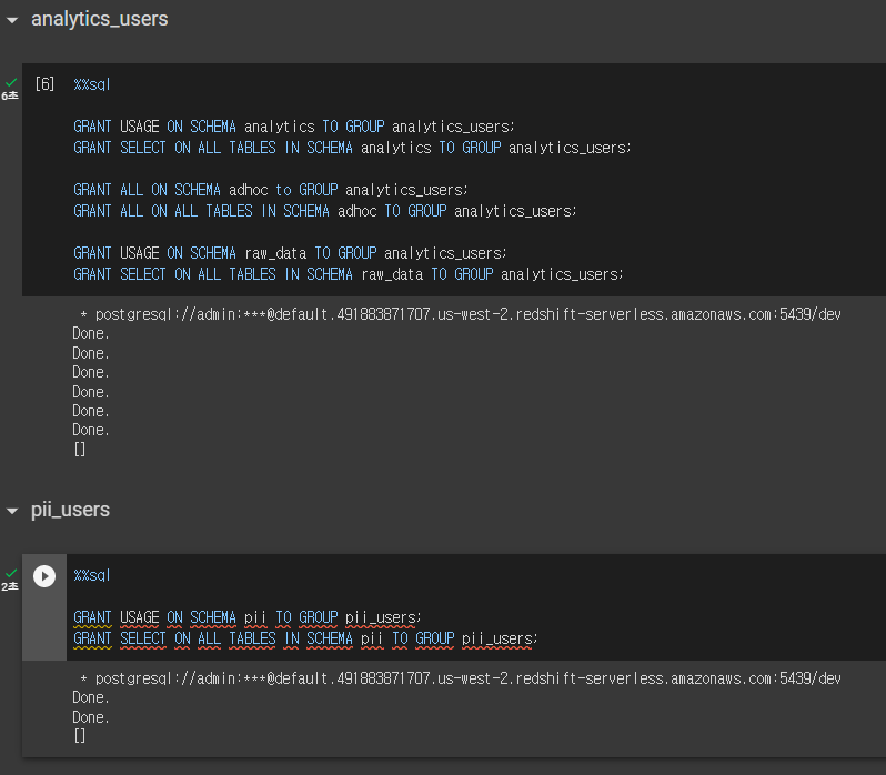 GRANT USAGE ON SCHEMA pii TO GROUP pii_users;