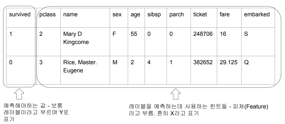 - 19개의 컬럼들이 예측을 하는데 필요한 힌트들이 될 것이며 어떤 컬럼들을 사용해야할 지는 data scientist의 몫이다.
