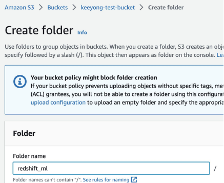 - S3 버킷 아래 redshift_ml 폴더 생성