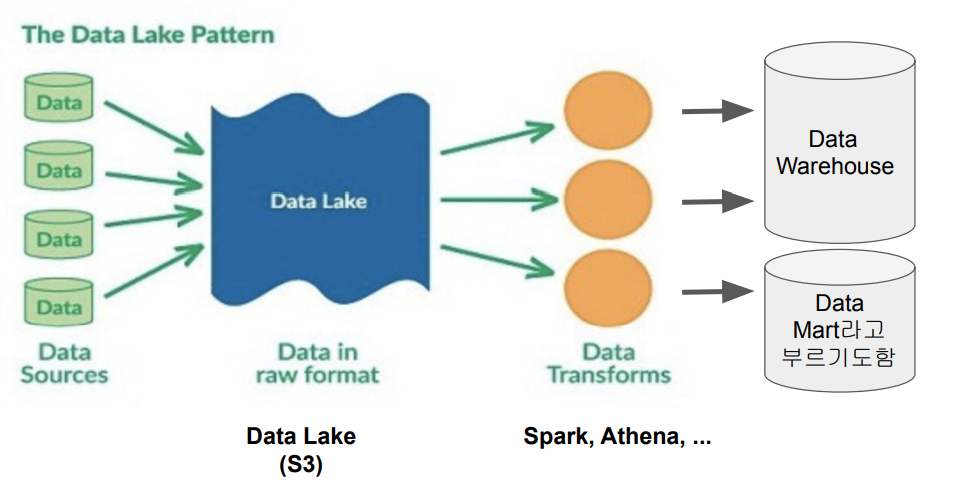 - 이 경우 데이터 레이크 위에서 이런 작업들이 벌어지기도 함