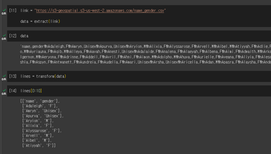 - 웹상에 존재하는 이름 성별 CSV 파일을 Redshift에 있는 테이블로 복사