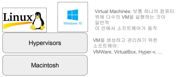 - 하드웨어를 추상화하여 한 컴퓨터 위에 가상 컴퓨터를 올리는 것