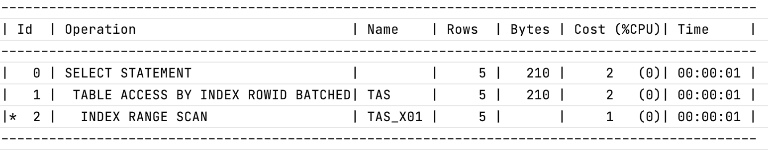 -> Optimizer가 tas_x01 인덱스를 선택하였다. 그 근거는 무엇일까?