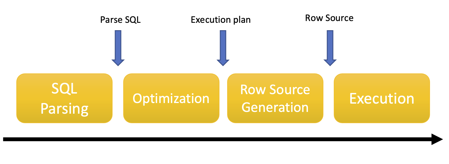 - 파싱트리 생성 :sql 문을 이루는 개별 구성요소를 분석해서 파싱 틍리 생성