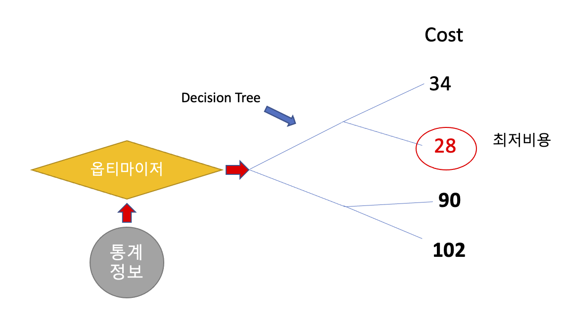 - 옵티마이저가 미리 수집한 시스템 및 오브젝트 통계정보를 바탕으로 다양한 실행 결로를 생성해서 비교한후 가장 효울적인 하나를 선택한다.