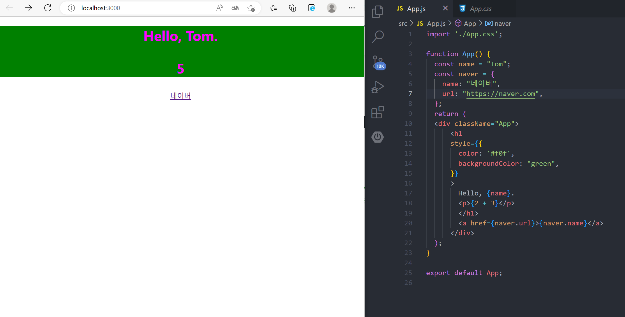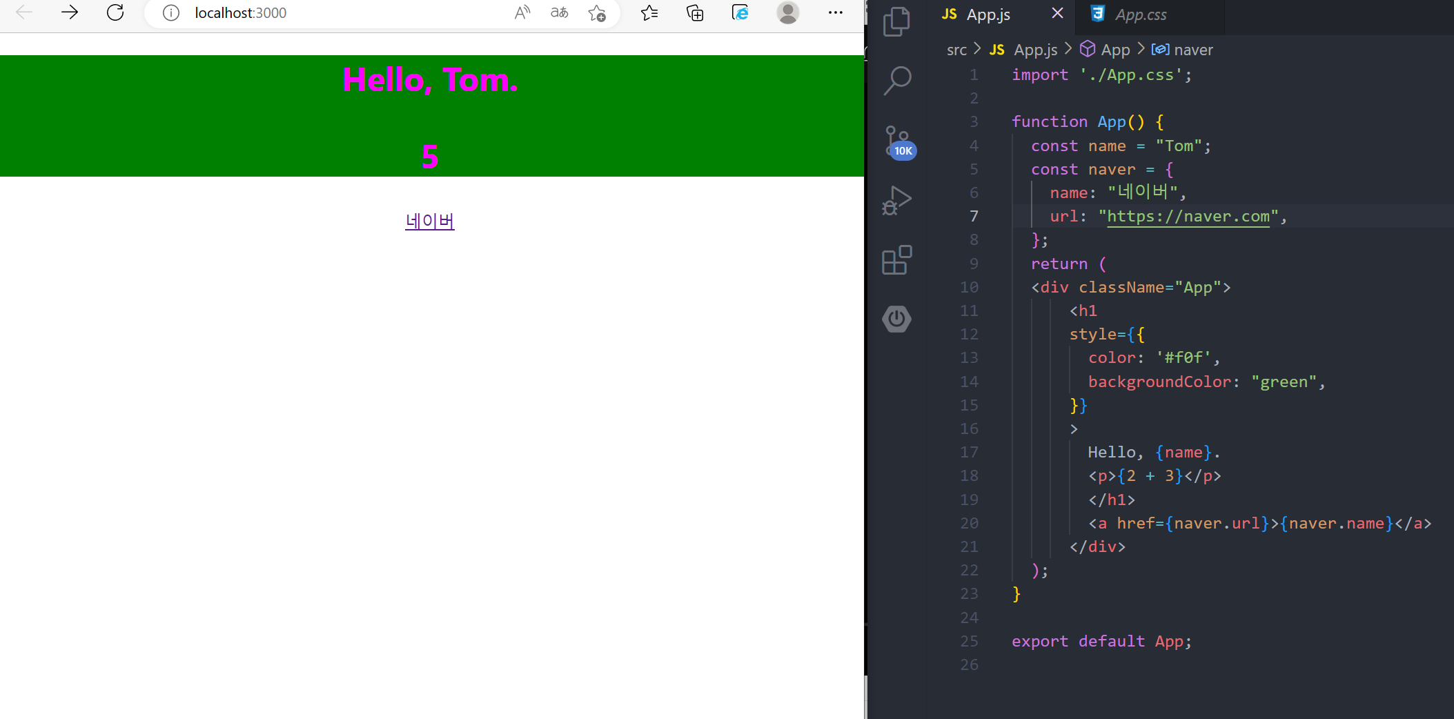 여기서 주의할점 : App.css는 App.js에만 적용되는 것이 아님