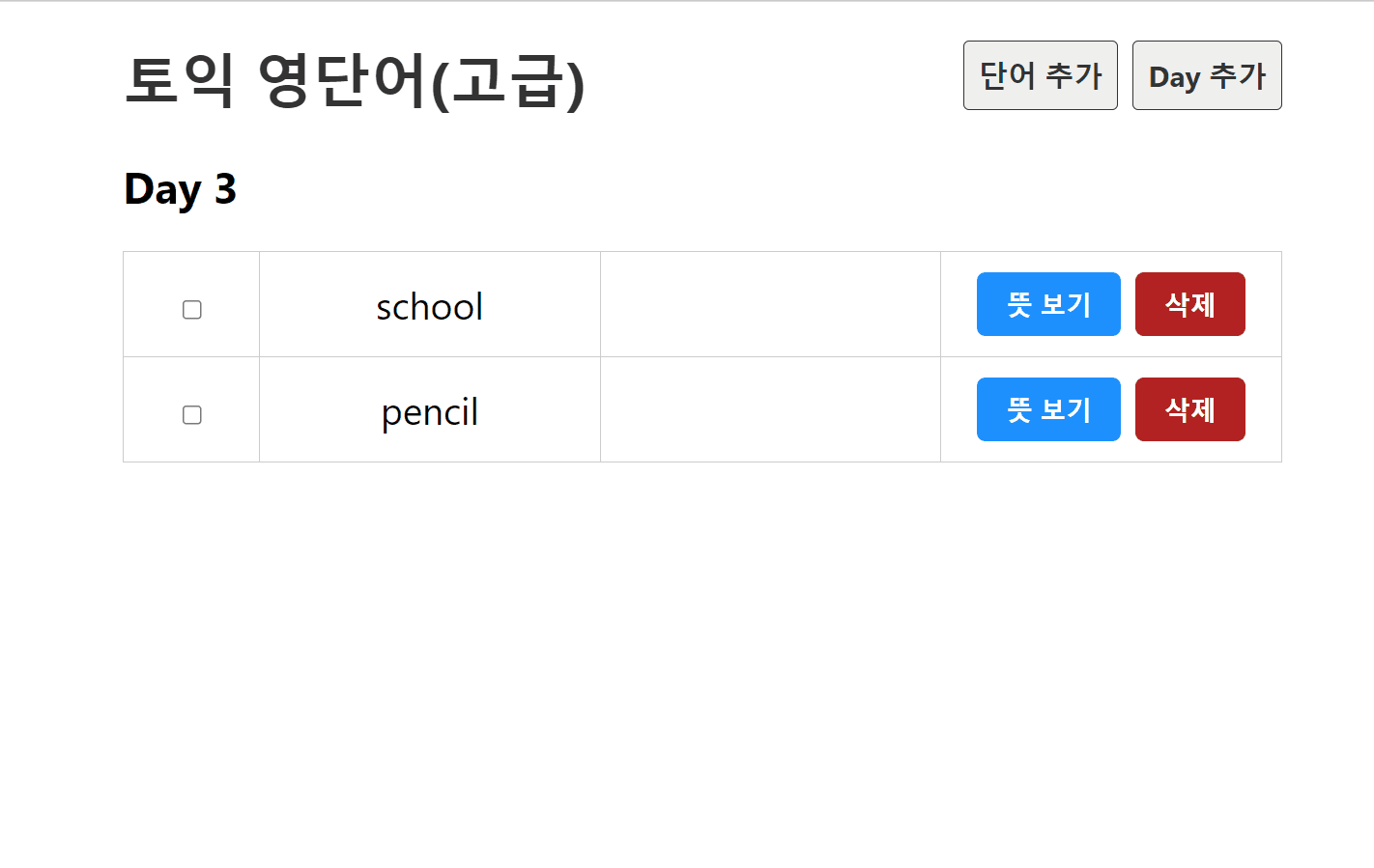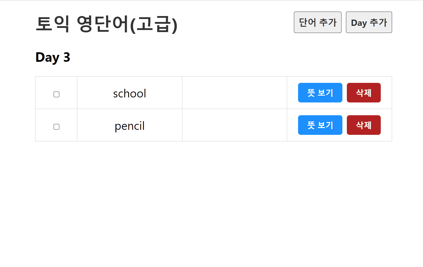 : 체크박스와 뜻보기/삭제 버튼 만들어주기