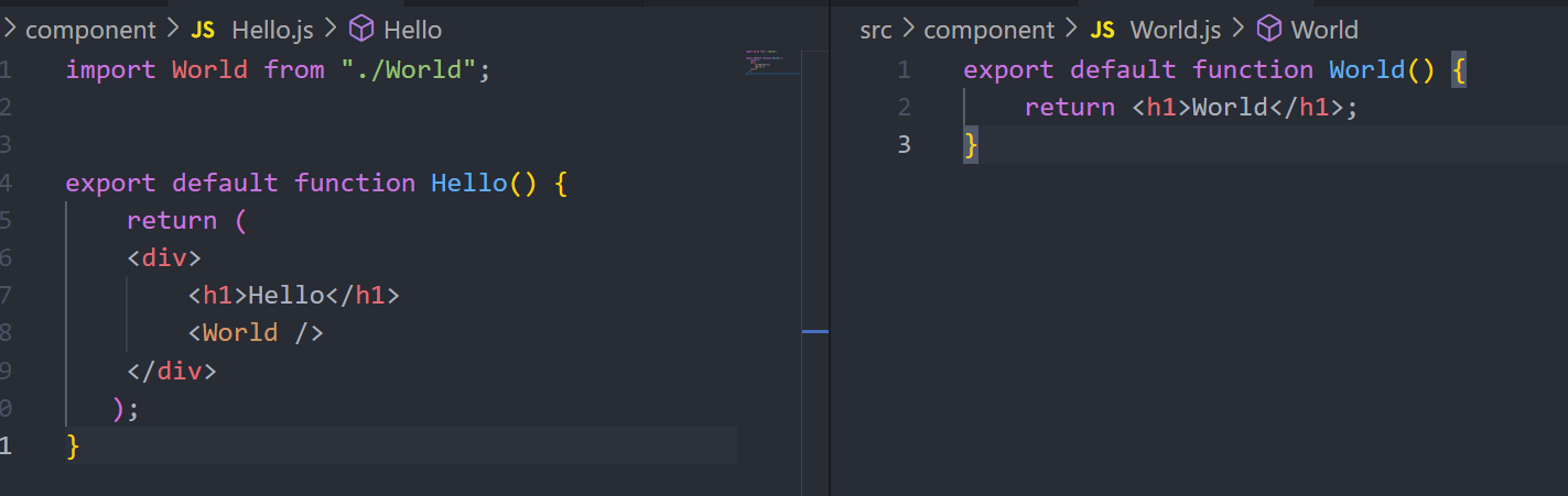 : 컴포넌트 이름은 항상 대문자로 시작하도록 한다.