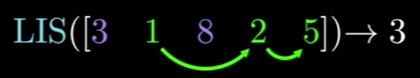 이 중 가장 길이가 긴 부분수열은 [1, 2, 5]로 위 문제에서 원하는 답은 이 수열의 길이 3이다. 여기서 보통은 백트래킹으로 for문 안에 재귀함수를 넣어서 모든 부분수열을 고려하는 방식을 생각할 것이다.