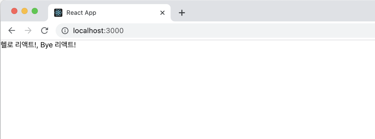 상위 컴포넌트에서 태그 사이에 작성한 "Bye 리액트!"가 출력된다.