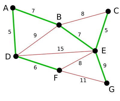끝내, EG가 연결되면서 알고리즘이 종료된다. 최소 비용 신장 부분 그래프가 완성되었다.