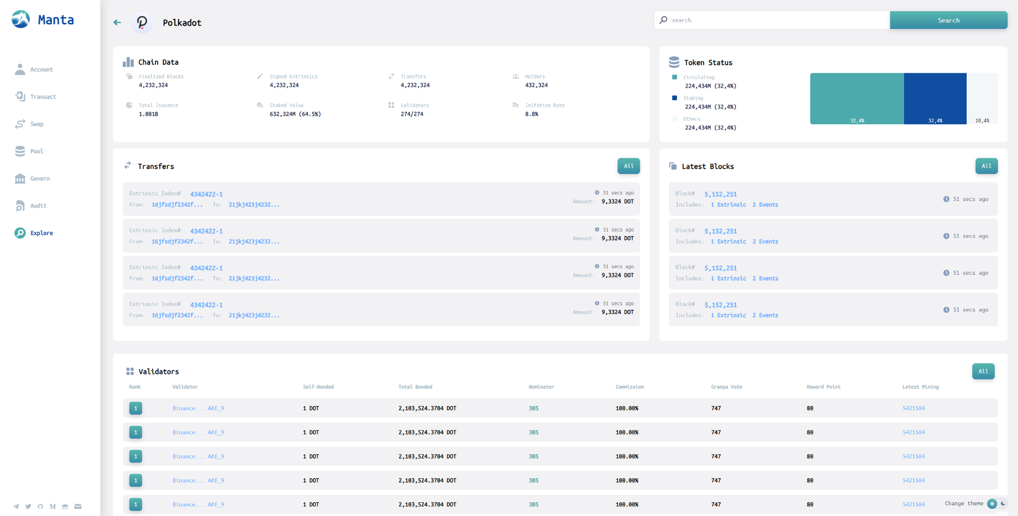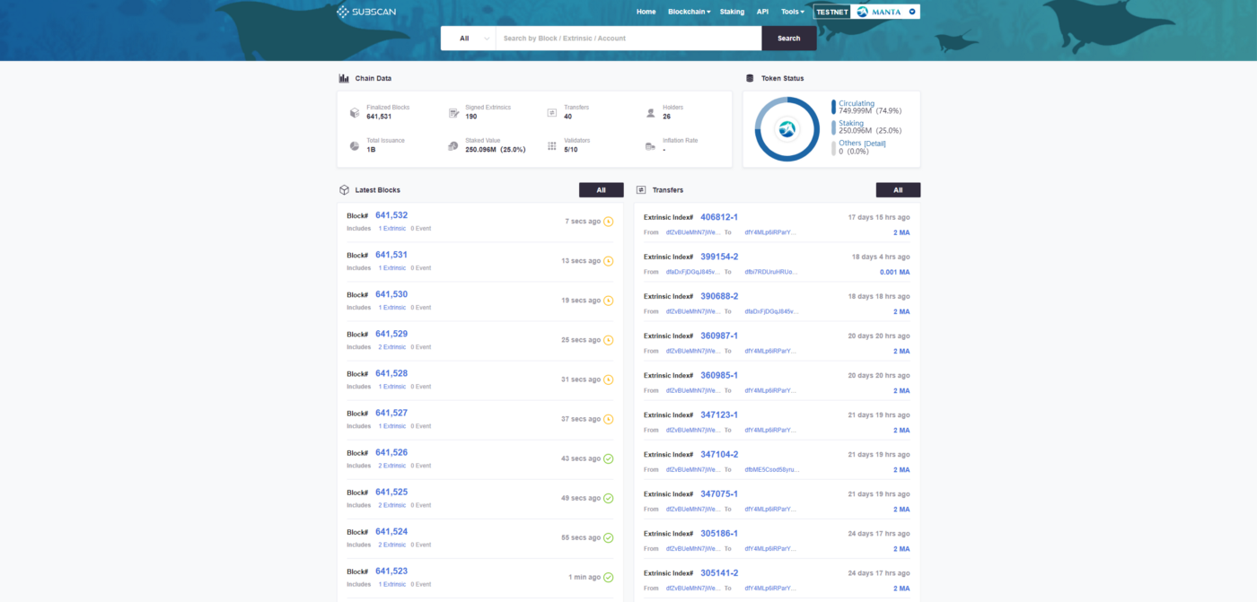 Subscan의 Manta Network 테스트 넷 블록 체인 탐색기 구현을 확인하십시오 .