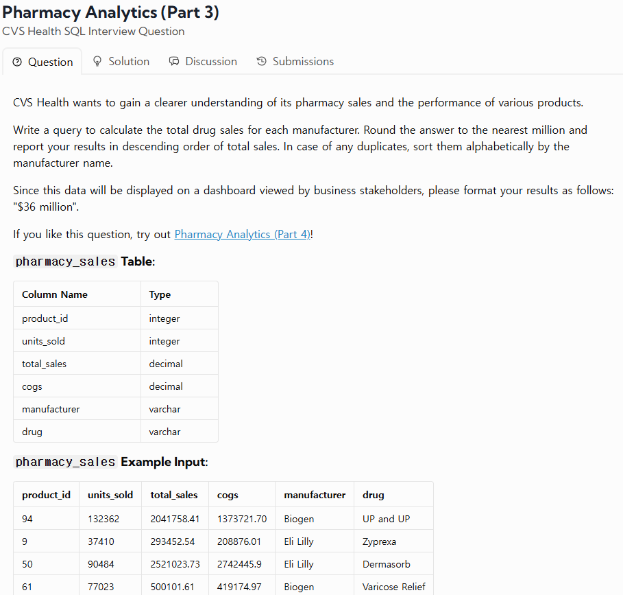 URL : https://datalemur.com/questions/total-drugs-sales
