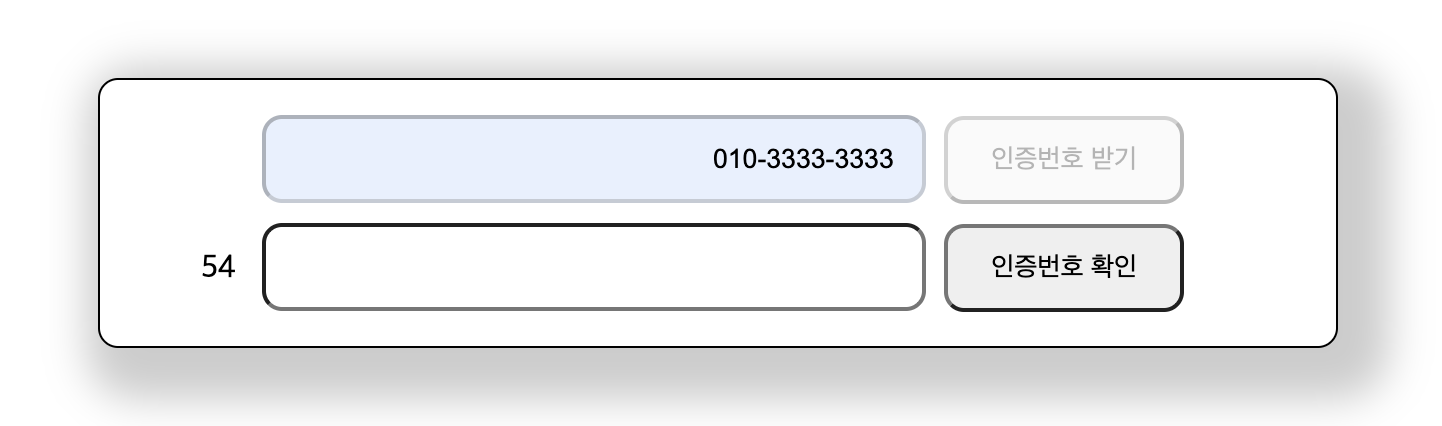 핸드폰 번호 입력창과 인증번호 받기 버튼 비활성화 후 카운트다운