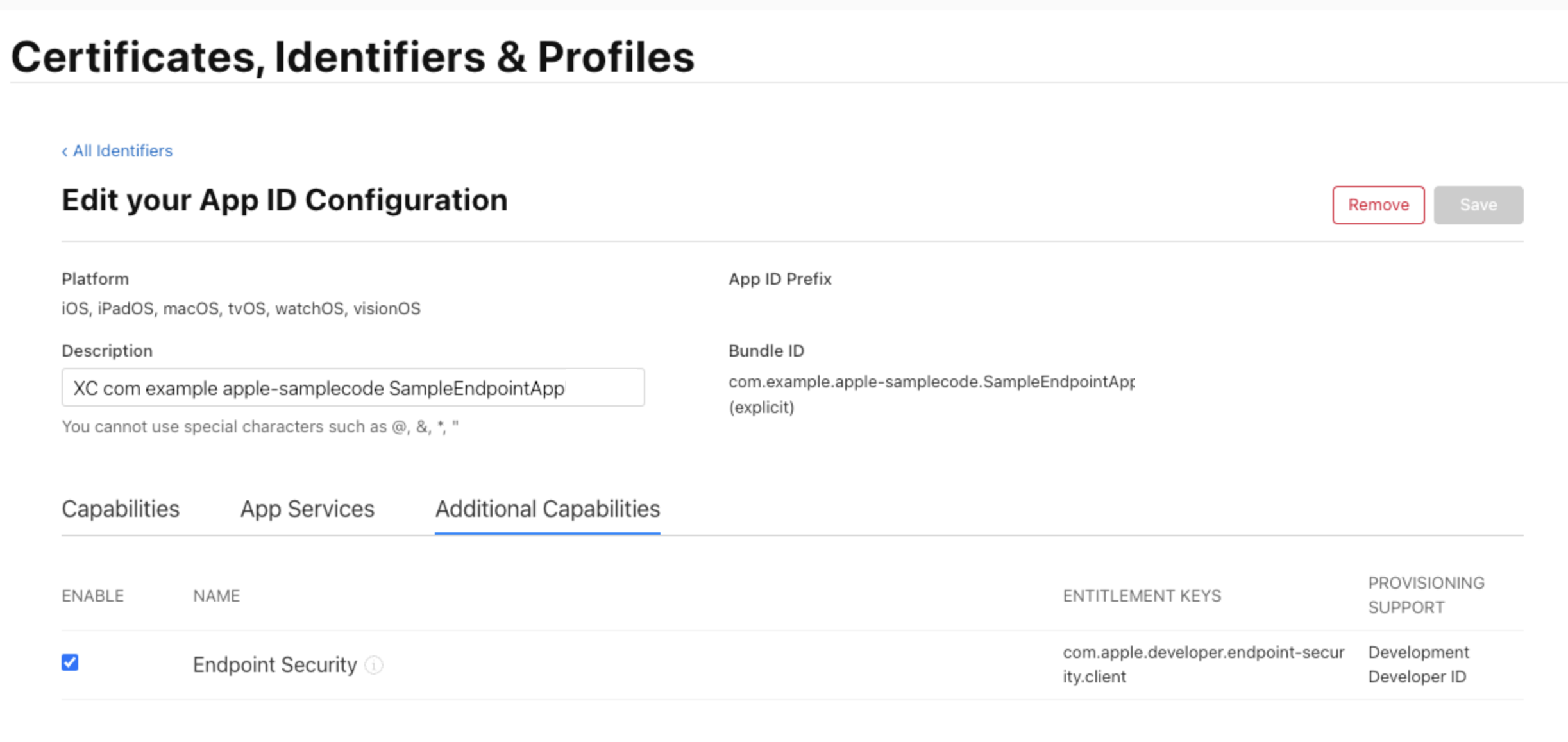메일 확인 후 Certificates, Identifiers & Profiles를 확인해보면 기존에 보이지 않던 Endpoont Security가 보이게 된다!
