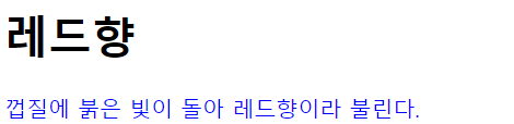 <p style="color: blue;"> 껍질에 붉은 빛이 돌아 레드향이라 불린다.</p>