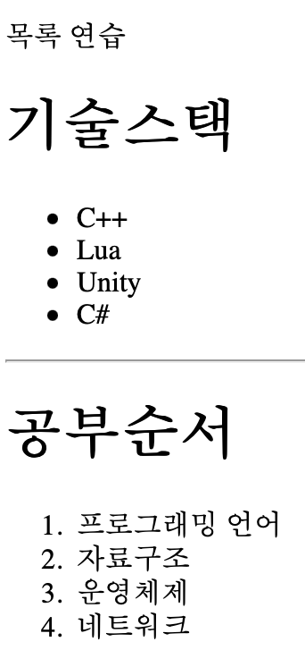 - 순서 없는 목록과 순서 있는 목록으로 구분