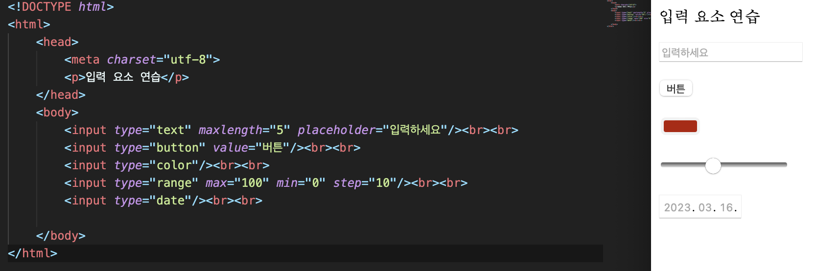 - type : 해당 값에 따라 입력 요소의 형태나 입력 데이터 유형 등이 달라진다