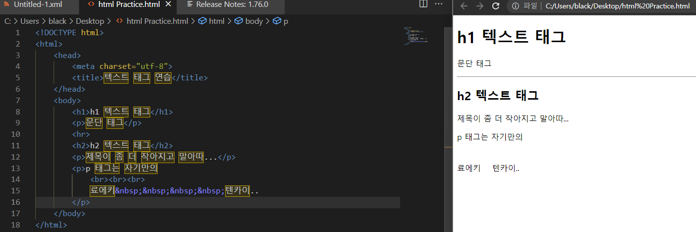 - & nbsp;를 이용하여 문단안에 공백을 여러번 사용 가능하다