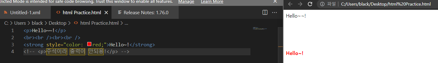 - <>와 </> 기호를 사용하여 시작과 끝을 표시