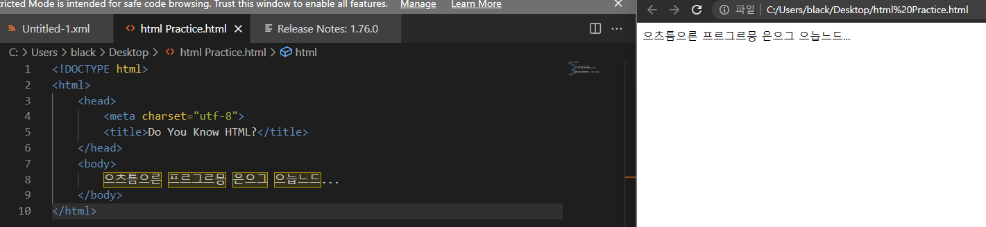 html은 언어이지만 프르그르믕 은으는 으늡느드...