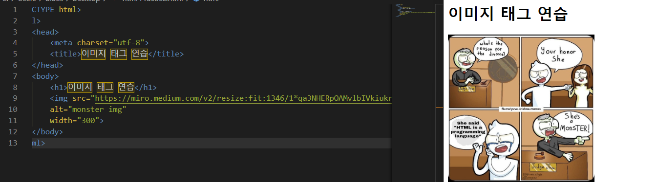 - alt : 이미지 로딩에 실패한 경우 출력되는 텍스트