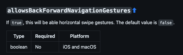 iOS에서는 앞으로/뒤로 스와이프 제스처, Android에서는 하드웨어 뒤로 버튼/제스처 등 기존 모바일 페이지 탐색 기능을 사용할 수 있게 다음과 같이 코드를 작성한다.