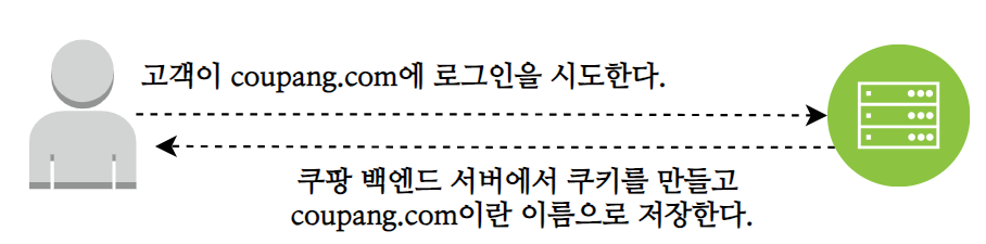 상민이가 coupang.com에 로그인할 때 BE 서버에서는 브라우저에 저장할 쿠키(Cookie)를 준다.