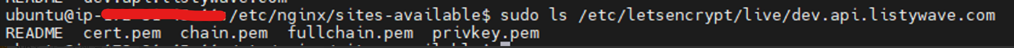 sudo ls /etc/letsencrypt/live/dev.api.listywave.com