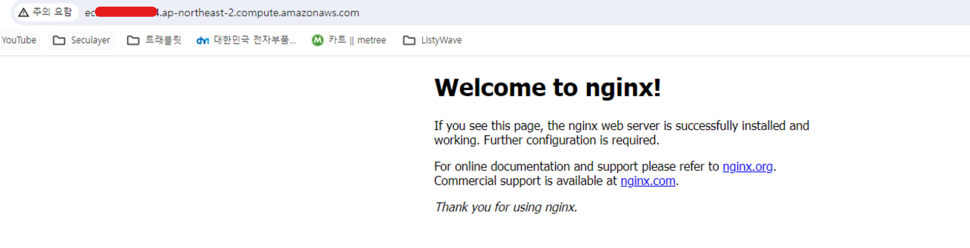 접속해보면 잘 접속된 것을 볼 수 있다! (http://3.xx.1.x/ 이걸로 해도 됨)