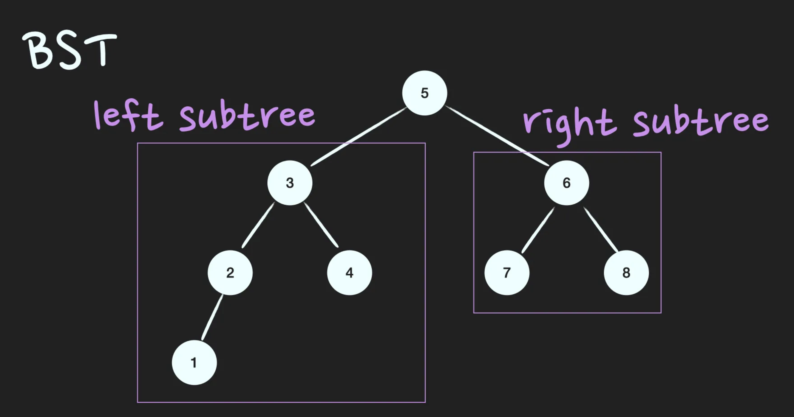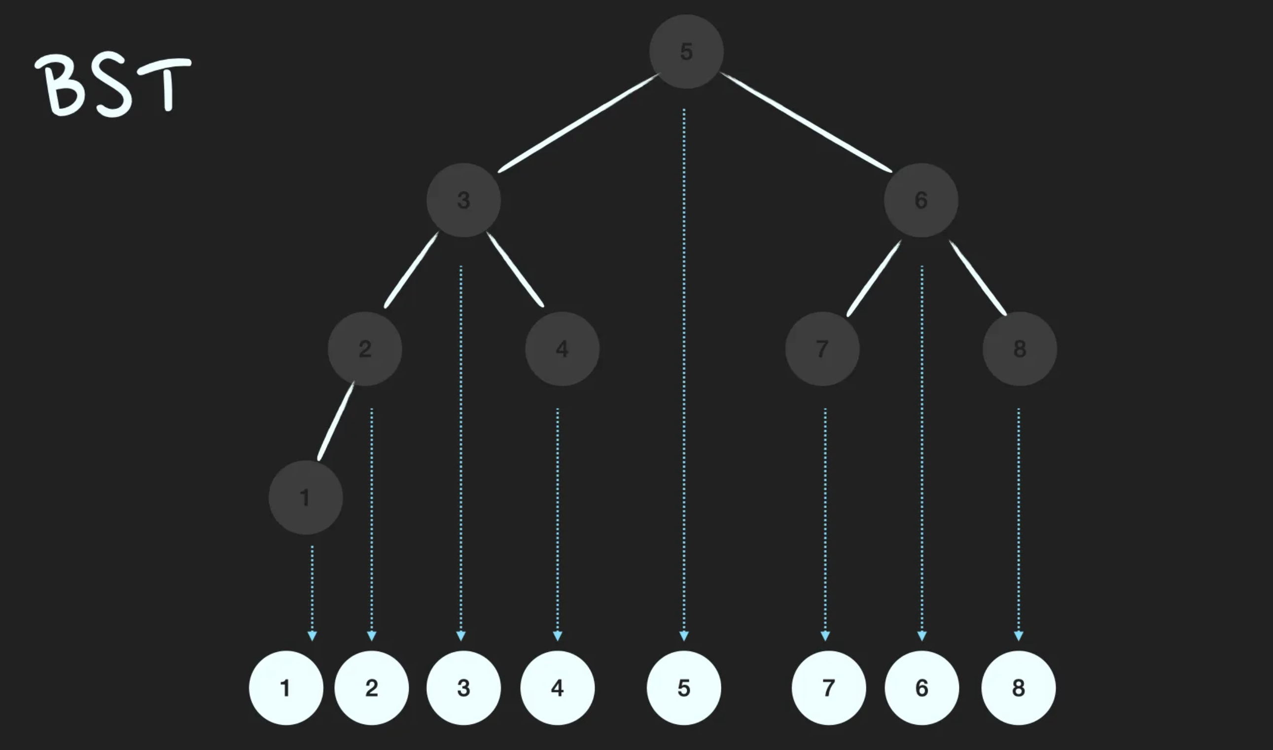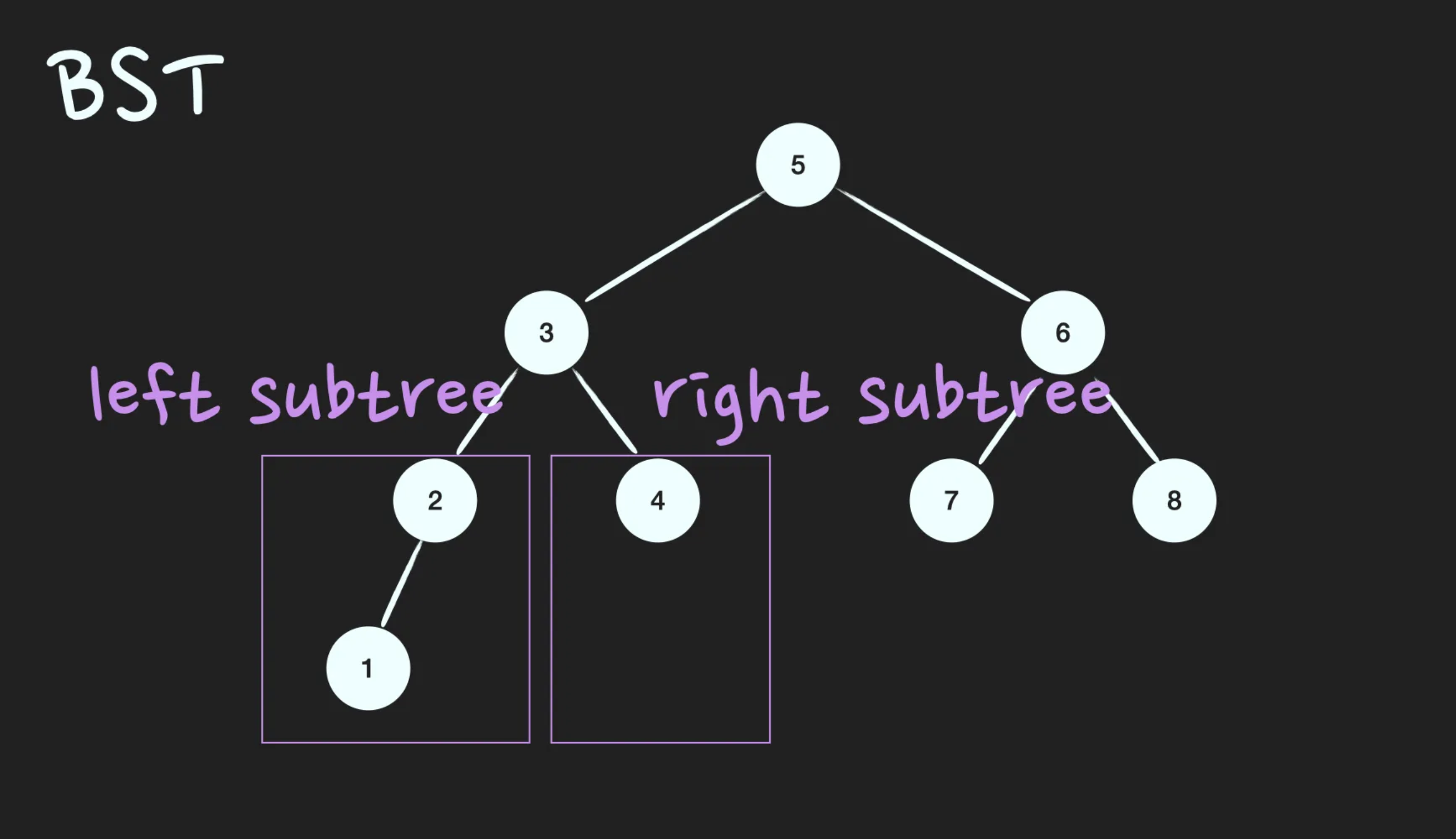 이진탐색트리(Binary Search Tree; BST)는 정렬된 tree입니다. 어느 node를 선택하든 해당 node의 left subtree에는 그 node의 값보다 작은 값들을 지닌 node들로만 이루어져 있고, node의 right subtree에는 그 node의 값보다 큰 값들을 지닌 node들로만 이루어져 있는 binary tree입니다.
