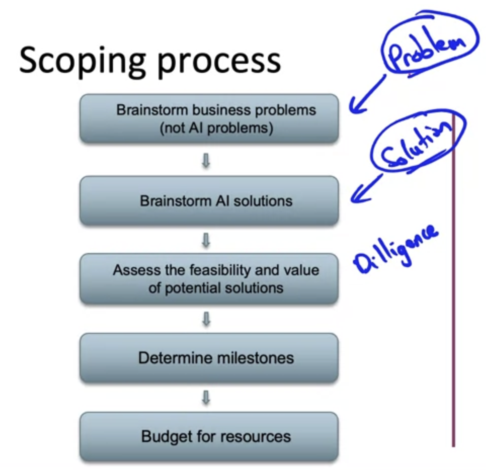 - 비즈니스 문제와 AI Solution을 분리하여 생각하는 것이 중요