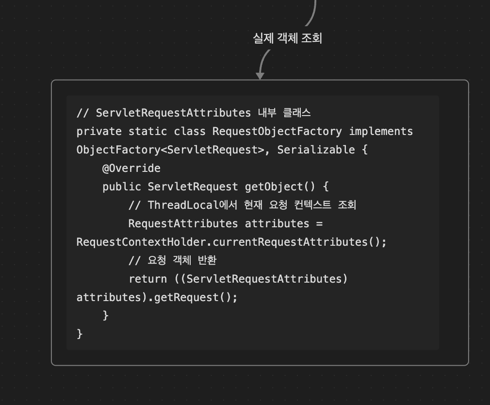 스프링은 "빈 등록 X → 대신 특별 관리 대상 → RequestContextHolder에서 꺼내오기" 전략을 씀.