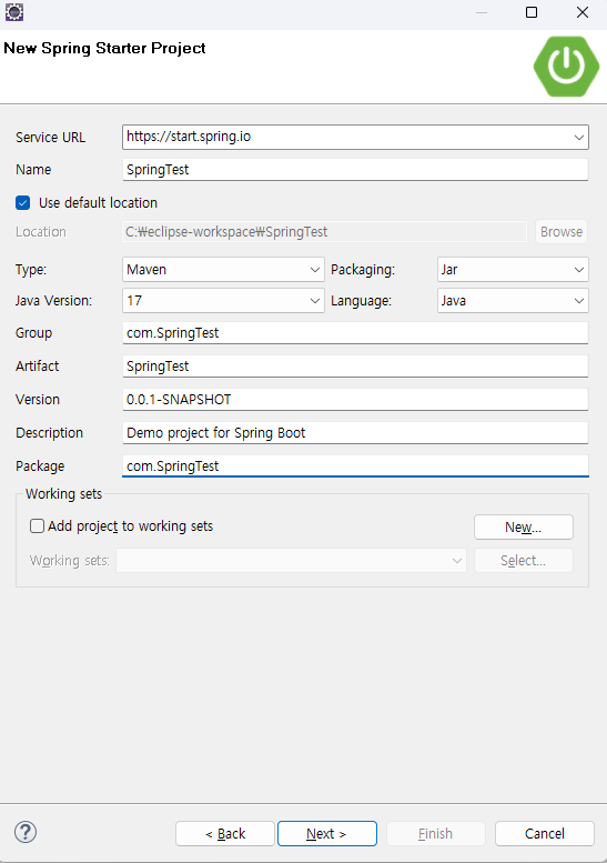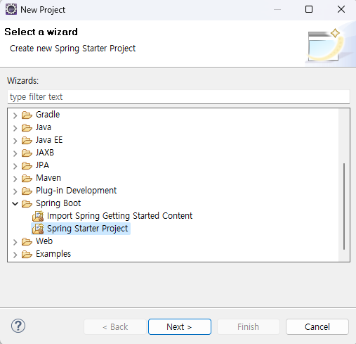 Spring Starer Project 를 선택한 뒤,