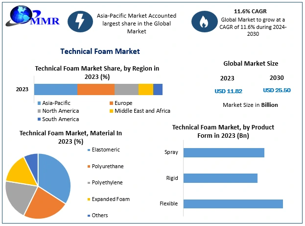 Technical Foam Market was valued at USD 11.82 Billion in 2023, and it is expected to reach USD 25.50 Billion by 2030, exhibiting a CAGR of 11.6 % during the forecast period (2024-2030)
