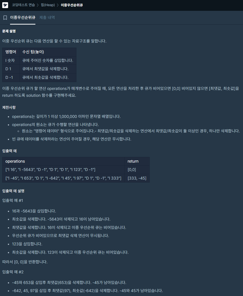 문제 풀기 : https://school.programmers.co.kr/learn/courses/30/lessons/42628