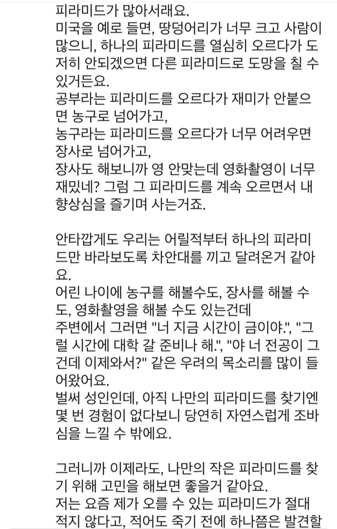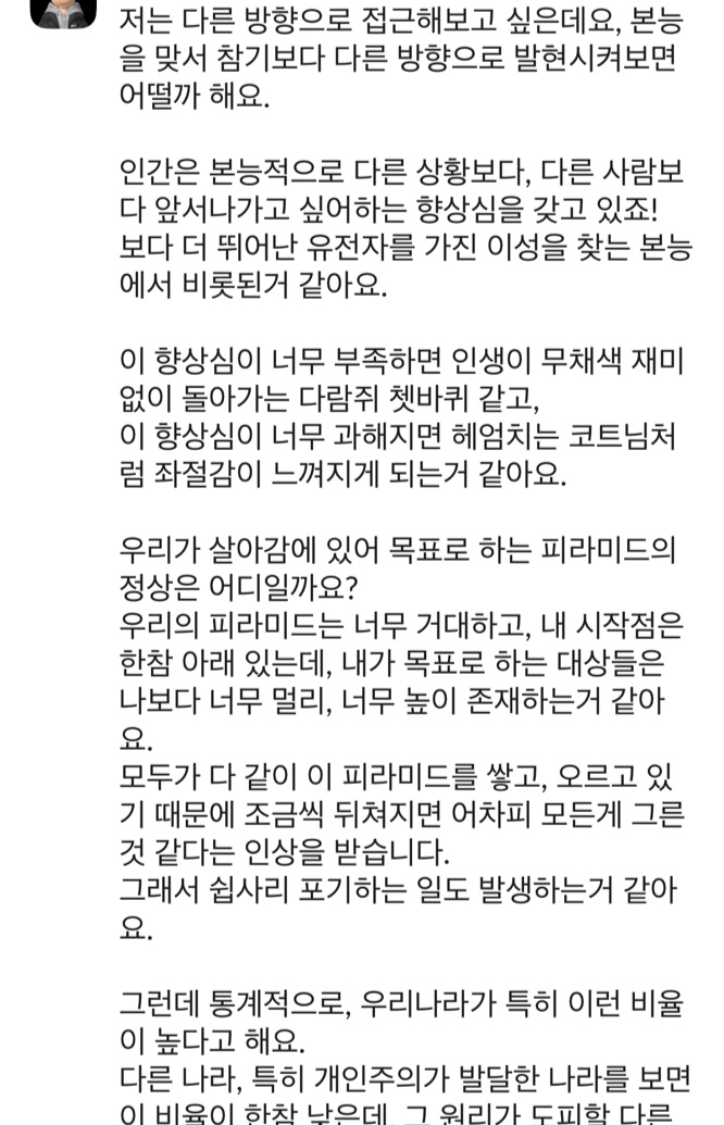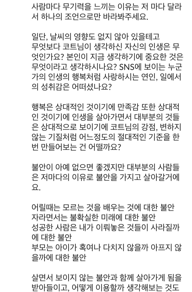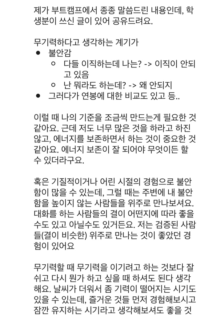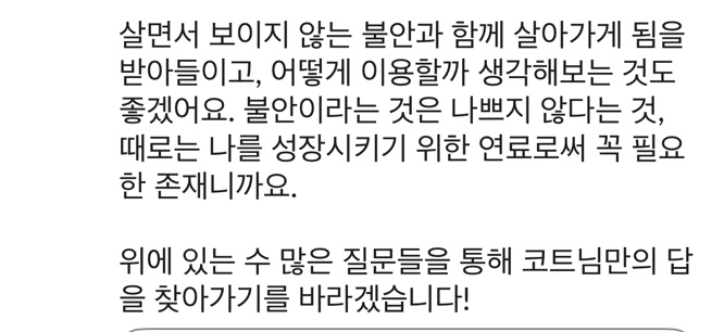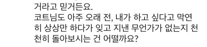 글에서 공감이 가는 부분들이 많았는데, 다시 힘을 내봐야겠다는 생각이 들었습니다.