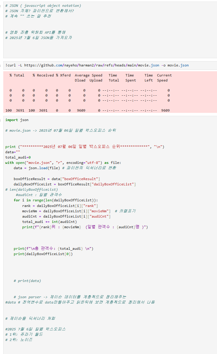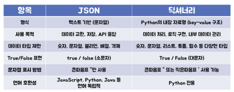 | json.load() | json 파일 읽기 json 파일 → 파이썬 딕셔너리로 변환 |