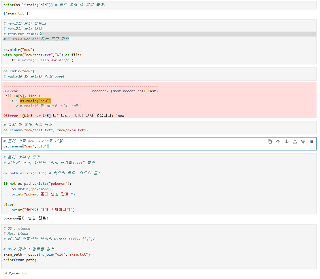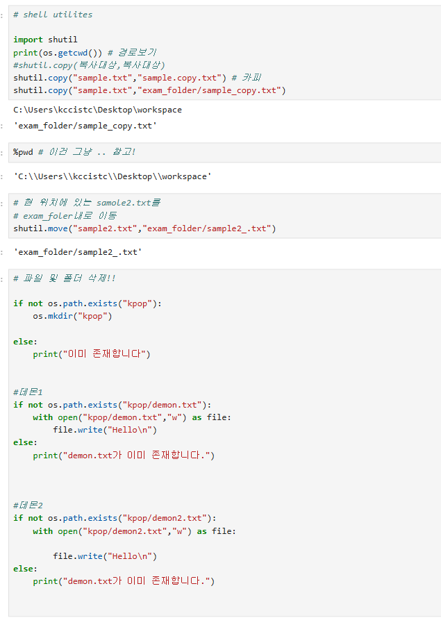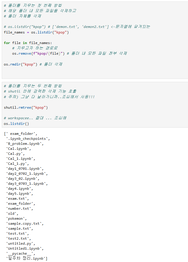 shutil.rmtree() | 폴더 안의 모든 내용 삭제 ⚠ 조심해서 사용할 것 |