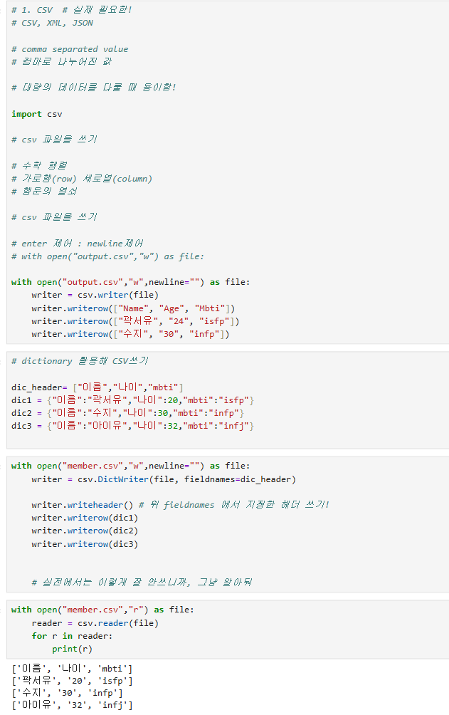 csv.writer(), writerow() | csv 파일 쓰기 |