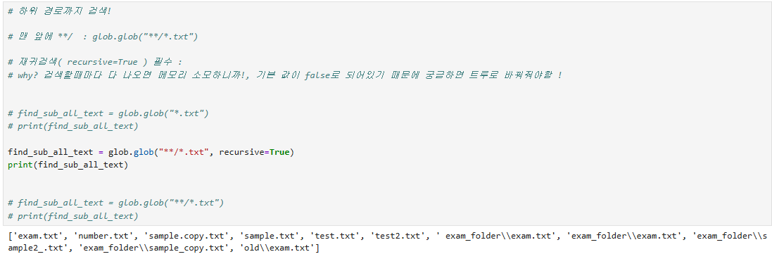 - "모든파일" , "특정 이름으로 시작하는 파일" , " 특정 확장자를 가진 파일" 같은 조건으로 파일 찾기가 가능!